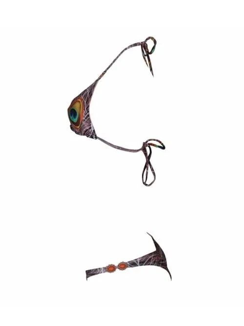 Es un estilo muy coqueto con su Panty hilo brasileño amarres largos y un Bra con trenzas para conquistar a donde vayas