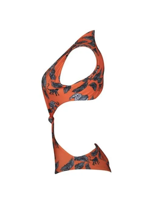 Es una propuesta con un print personalizado la cual tiene una tendencia muy hippie tales como elefantes, plumas y monos que es inspirado en la naturaleza. Esta prenda te hace ver chic y pega muy bien con el sol o con tu bronceado. Esta prenda le va bien la tes blanca y morena.