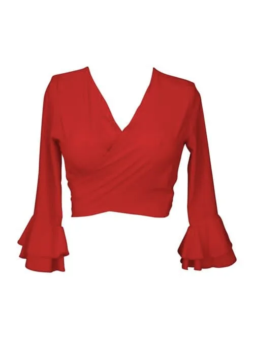 La Blusa Kasandra para llevar con cualquier prenda que desees. Tiene un estilo muy gitano con boleros en las mangas en color negro.